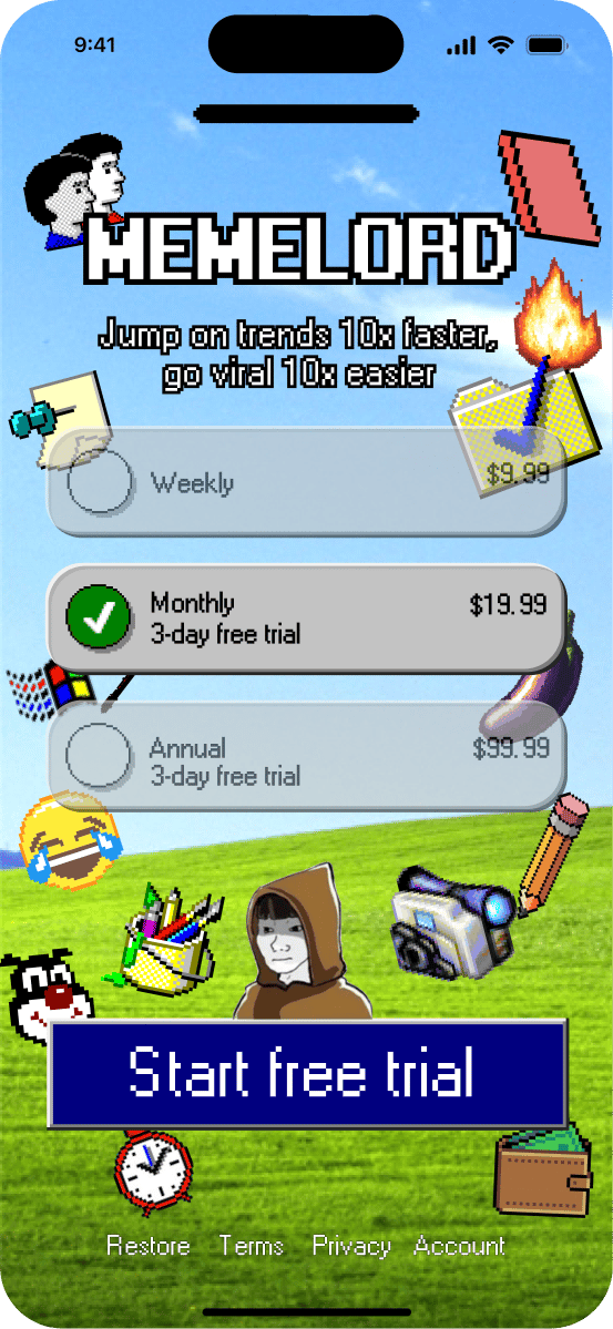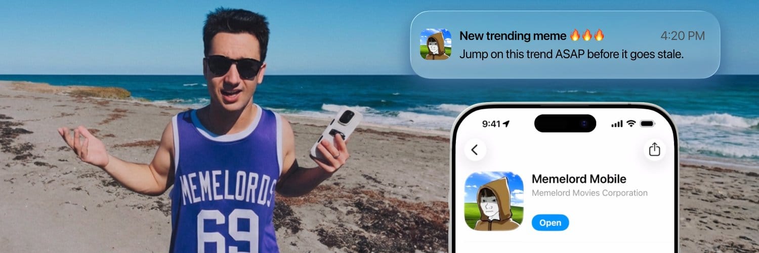 The plan was always to build an iOS app but I didn’t know how and I didn’t have the money, so I started Memelord with a daily newsletter for hot memes for $6.90/month. Then I watched some youtube and drank some red bull and built a no-code meme editor to $100K ARR. Then I raised the $3M and boom now we have the iOS app.