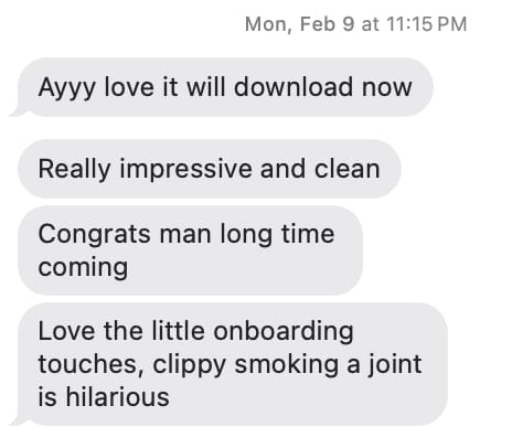 It’s just a straight hit of dopamine. We filled our onboarding with cool haptics and animations as our icons float around and people love it (too much maybe???)