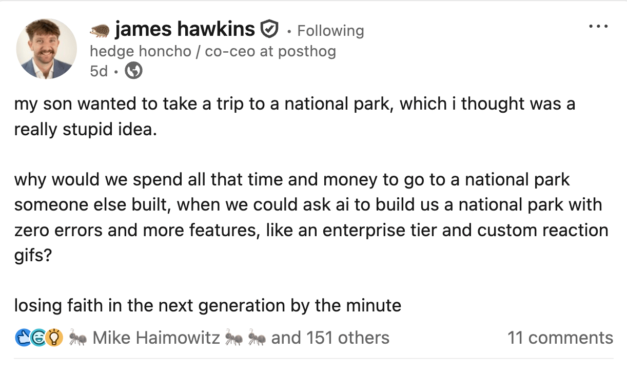 At this point you’ve agreed that being funny and entertaining on LinkedIn is a moat (if you disagree scroll back to the top and re-read until you agree).