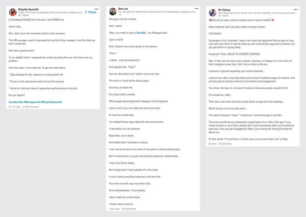 Exaggerated satirical stories and posts work well on LinkedIn. People love funny fake stories. That’s why Mark Twain, The Onion, and The Babylon Bee are popular.